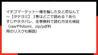 イチゴマーケット~俺を騙した女と恋なんて~【タテヨミ】 イチゴマーケット~俺を騙した女と恋なんて~【タテヨミ】 1巻はどこで読める?あらすじやネタバレ、全巻無料で読む方法も検証(rawやhitomi、zip/pdf利用のリスクも解説)