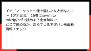 イチゴマーケット~俺を騙した女と恋なんて~【タテヨミ】16巻 あらすじを詳しく調べてみた!作品の魅力と基本情報タテヨミ形式で読みやすい恋愛ドラマ漫画『イチゴマーケット~俺を騙した女と恋なんて~』は、ネットフリマの詐欺から始まるドキドキのラブ...