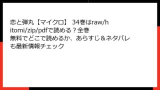 恋と弾丸【マイクロ】67巻のあらすじ詳解人気漫画「恋と弾丸」のマイクロ版67巻は、シリーズの特別編として位置づけられ、物語の核心に迫る感動的なエピソードです。この巻では、主人公たちの出会いの背景が深く掘り下げられ、読者の心を揺さぶります。以...