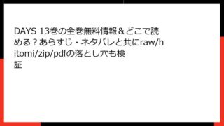 DAYS DAYS 41巻はどこで読める?全巻無料の方法・あらすじ・ネタバレとraw/hitomi/zip/pdfの違法性も比較調査