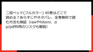 二段ベッド(フルカラー) 二段ベッド(フルカラー) 40巻はどこで読める?あらすじやネタバレ、全巻無料で読む方法も検証(rawやhitomi、zip/pdf利用のリスクも解説) 『二段ベッド(フルカラー)』第40巻の魅力に迫る! 甘く切ない同棲ラブストーリーのクライマックスを紐解くこんにちは、漫画好きの皆さん! 今日は、韓国発の人気ラブコメディ『二段ベッド(フルカラー)』の第40巻について、詳しくあらすじを掘り下げ... 2025.11.08 二段ベッド(フルカラー)青年マンガ・コミック
