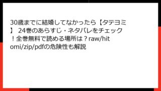 「30歳までに結婚してなかったら【タテヨミ】」31巻のあらすじ詳解この記事では、縦読み形式の人気エロコメディ漫画「30歳までに結婚してなかったら【タテヨミ】」の31巻について、詳細なあらすじを掘り下げて紹介します。シリーズ全体の魅力も交えつ...