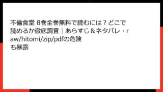 不倫食堂 不倫食堂 8巻全巻無料で読むには?どこで読めるか徹底調査|あらすじ&ネタバレ・raw/hitomi/zip/pdfの危険も暴露 不倫食堂 8巻:食欲と色欲の狭間で繰り広げられる禁断の旅路こんにちは、漫画好きの皆さん! 今日も不倫食堂の世界に浸りたくて、8巻を読み返しました。このシリーズは、作者・山口譲司先生の絶妙なタッチで描かれる食の魅力と、人妻との一夜の情事が織り... 2025.11.09 不倫食堂青年マンガ・コミック