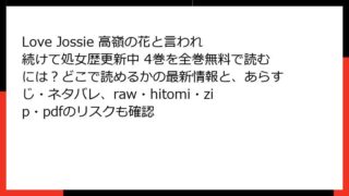 Love Jossie 高嶺の花と言われ続けて処女歴更新中 Love Jossie 高嶺の花と言われ続けて処女歴更新中 4巻を全巻無料で読むには?どこで読めるかの最新情報と、あらすじ・ネタバレ、raw・hitomi・zip・pdfのリスクも確認