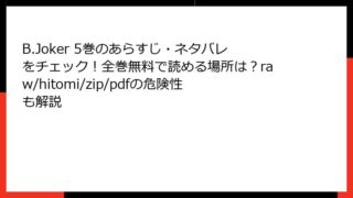 B.Joker 5巻のあらすじ・ネタバレをチェック!全巻無料で読める場所は?raw/hitomi/zip/pdfの危険性も解説