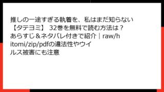 女性マンガ・コミック 推しの一途すぎる執着を、私はまだ知らない【タテヨミ】 32巻を無料で読む方法は?あらすじ&ネタバレ付きで紹介|raw/hitomi/zip/pdfの違法性やウイルス被害にも注意 推しの一途すぎる執着を、私はまだ知らない【タテヨミ】 32巻:転生推し活のクライマックスが熱い! 詳細あらすじレビューこんにちは、漫画大好きブロガーのあかりです! 今日は、ファンタジーラブコメの傑作『推しの一途すぎる執着を、私はまだ知らない... 2025.11.09 女性マンガ・コミック推しの一途すぎる執着を、私はまだ知らない【タテヨミ】