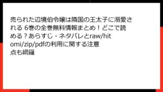 売られた辺境伯令嬢は隣国の王太子に溺愛される 売られた辺境伯令嬢は隣国の王太子に溺愛される 6巻の全巻無料情報まとめ!どこで読める?あらすじ・ネタバレとraw/hitomi/zip/pdfの利用に関する注意点も網羅 売られた辺境伯令嬢は隣国の王太子に溺愛される 6巻の魅力に迫る! 詳細あらすじと見どころを徹底解説皆さん、こんにちは! ファンタジーロマンスの傑作として大人気のマンガ「売られた辺境伯令嬢は隣国の王太子に溺愛される」。今回は、ついに6巻の詳細... 2025.11.09 売られた辺境伯令嬢は隣国の王太子に溺愛される女性マンガ・コミック