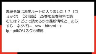 少女マンガ・コミック 悪役令嬢は溺愛ルートに入りました!?(コミック)【分冊版】 25巻を全巻無料で読むには?どこで読めるかの最新情報と、あらすじ・ネタバレ、raw・hitomi・zip・pdfのリスクも確認 悪役令嬢は溺愛ルートに入りました!?(コミック)【分冊版】 25巻 あらすじ大解剖! 溺愛の渦中がさらに加速する一冊みなさん、こんにちは! 異世界転生×悪役令嬢ジャンルの熱狂的なファンとして、今日もお届けするのは大人気コミック『悪役令嬢は溺... 2025.11.09 少女マンガ・コミック悪役令嬢は溺愛ルートに入りました!?(コミック)【分冊版】