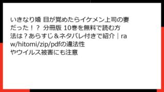いきなり婚 目が覚めたらイケメン上司の妻だった!? 分冊版 いきなり婚 目が覚めたらイケメン上司の妻だった!? 分冊版 10巻を無料で読む方法は?あらすじ&ネタバレ付きで紹介|raw/hitomi/zip/pdfの違法性やウイルス被害にも注意