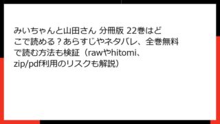 みいちゃんと山田さん 分冊版 みいちゃんと山田さん 分冊版 22巻はどこで読める?あらすじやネタバレ、全巻無料で読む方法も検証(rawやhitomi、zip/pdf利用のリスクも解説) みいちゃんと山田さん 分冊版 22巻:夜の街で紡がれる儚い絆の物語こんにちは、漫画好きのブロガーです。今回は、亜月ねね先生の感動作『みいちゃんと山田さん』の分冊版22巻について、詳しくあらすじを掘り下げてお届けします。この作品は、2012年... 2025.11.09 みいちゃんと山田さん 分冊版少年マンガ・コミック