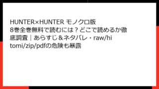 HUNTER×HUNTER モノクロ版 HUNTER×HUNTER モノクロ版 8巻全巻無料で読むには?どこで読めるか徹底調査|あらすじ&ネタバレ・raw/hitomi/zip/pdfの危険も暴露