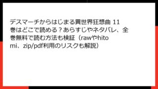 デスマーチからはじまる異世界狂想曲 デスマーチからはじまる異世界狂想曲 11巻はどこで読める?あらすじやネタバレ、全巻無料で読む方法も検証(rawやhitomi、zip/pdf利用のリスクも解説)