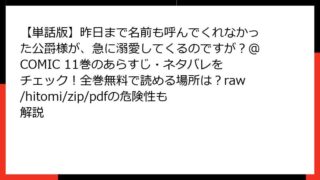 【単話版】昨日まで名前も呼んでくれなかった公爵様が、急に溺愛してくるのですが?@COMIC 【単話版】昨日まで名前も呼んでくれなかった公爵様が、急に溺愛してくるのですが?@COMIC 11巻のあらすじ・ネタバレをチェック!全巻無料で読める場所は?raw/hitomi/zip/pdfの危険性も解説