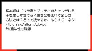 少女マンガ・コミック 松本透はゴリラ妻とプリティ娘とツンデレ息子を愛しすぎてる 4巻を全巻無料で楽しむ方法とは?どこで読めるか、あらすじ・ネタバレ、raw/hitomi/zip/pdfの違法性も確認