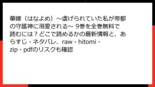 少女マンガ・コミック 華嫁(はなよめ)~虐げられていた私が帝都の守護神に溺愛される~ 9巻を全巻無料で読むには?どこで読めるかの最新情報と、あらすじ・ネタバレ、raw・hitomi・zip・pdfのリスクも確認 華嫁(はなよめ)~虐げられていた私が帝都の守護神に溺愛される~ 9巻 詳細あらすじレビューこんにちは、漫画好きのブロガーです! 今日は、烏丸紫明さん原作、灯路ほっけさん作画による人気和風ファンタジーロマンス『華嫁(はなよめ)~虐げられていた... 2025.11.10 少女マンガ・コミック華嫁(はなよめ)~虐げられていた私が帝都の守護神に溺愛される~