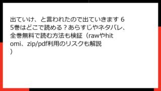 出ていけ、と言われたので出ていきます 出ていけ、と言われたので出ていきます 66巻の全巻無料情報まとめ!どこで読める?あらすじ・ネタバレとraw/hitomi/zip/pdfの利用に関する注意点も網羅