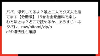 パパ、浮気してるよ?娘と二人でクズ夫を捨てます【分冊版】 パパ、浮気してるよ?娘と二人でクズ夫を捨てます【分冊版】 19巻を全巻無料で楽しむ方法とは?どこで読めるか、あらすじ・ネタバレ、raw/hitomi/zip/pdfの違法性も確認