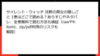 サイレント・ウィッチ 沈黙の魔女の隠しごと サイレント・ウィッチ 沈黙の魔女の隠しごと 1巻はどこで読める?あらすじやネタバレ、全巻無料で読む方法も検証(rawやhitomi、zip/pdf利用のリスクも解説) サイレント・ウィッチ 沈黙の魔女の隠しごと 1巻:気弱最強魔女の学園潜入大作戦を徹底解説!皆さん、こんにちは! ファンタジー好きのブロガー、魔法の書庫管理人です。今日は、話題沸騰中のコミック『サイレント・ウィッチ 沈黙の魔女の隠しごと』1巻... 2025.11.11 サイレント・ウィッチ 沈黙の魔女の隠しごと少女マンガ・コミック