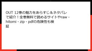 OUT OUT 12巻の魅力をあらすじ&ネタバレで紹介!全巻無料で読めるサイトやraw・hitomi・zip・pdfの危険性も検証