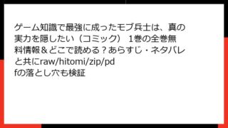 ゲーム知識で最強に成ったモブ兵士は、真の実力を隠したい(コミック) ゲーム知識で最強に成ったモブ兵士は、真の実力を隠したい(コミック) 1巻の全巻無料情報&どこで読める?あらすじ・ネタバレと共にraw/hitomi/zip/pdfの落とし穴も検証