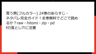 奪う男(フルカラー) 奪う男(フルカラー) 24巻のあらすじ・ネタバレ完全ガイド!全巻無料でどこで読めるか?raw・hitomi・zip・pdfの落とし穴に注意 奪う男(フルカラー) 24巻の魅力に迫る! 復讐の果てに訪れる新たな陰謀こんにちは、マンガ好きのブロガーです! 今日は、ツルマメ先生の人気フルカラーマンガ『奪う男(フルカラー)』の最新刊、24巻について詳しく語っていきたいと思います。この作... 2025.11.12 奪う男(フルカラー)青年マンガ・コミック