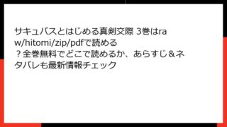 サキュバスとはじめる真剣交際 サキュバスとはじめる真剣交際 3巻はraw/hitomi/zip/pdfで読める?全巻無料でどこで読めるか、あらすじ&ネタバレも最新情報チェック サキュバスとはじめる真剣交際 3巻:エッチな悪魔との本気の恋が加速するラブコメの傑作こんにちは、漫画好きの皆さん! 今日もおすすめのコミックを深掘りしてお届けします。今回は、宍戸まめぞう先生の人気作『サキュバスとはじめる真剣交際』の3巻につ... 2025.11.12 サキュバスとはじめる真剣交際少年マンガ・コミック