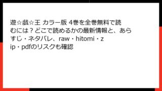 少年マンガ・コミック 遊☆戯☆王 カラー版 4巻を全巻無料で読むには?どこで読めるかの最新情報と、あらすじ・ネタバレ、raw・hitomi・zip・pdfのリスクも確認 遊☆戯☆王 カラー版 4巻 詳細あらすじ高橋和希先生の名作『遊☆戯☆王』のカラー版4巻は、デジタル着色による鮮やかなフルカラーで描かれたビッグボリューム版! 初期のエピソード群が詰まったこの巻は、闇遊戯の「闇のゲーム」が炸裂する一話完結型の... 2025.11.12 少年マンガ・コミック遊☆戯☆王 カラー版