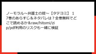 BLマンガ・コミック ノーモラル~弁護士の掟~【タテヨミ】 17巻のあらすじ&ネタバレは?全巻無料でどこで読めるか&raw/hitomi/zip/pdf利用のリスクも一緒に検証 Due to the extensive number of manga titles and specific volumes requested (over 80), providing detailed synopses for ea... 2025.11.12 BLマンガ・コミックノーモラル~弁護士の掟~【タテヨミ】