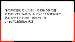 俺の声に堕ちてください 分冊版 俺の声に堕ちてください 分冊版 5巻の魅力をあらすじ&ネタバレで紹介!全巻無料で読めるサイトやraw・hitomi・zip・pdfの危険性も検証 俺の声に堕ちてください 分冊版 5巻:甘いささやきが心を溶かすオフィスラブの新章こんにちは、恋愛漫画大好き読者の皆さん! 今日のブログ記事では、ten先生の人気作『俺の声に堕ちてください 分冊版』の5巻について、詳しくあらすじを掘り下げてお... 2025.11.12 俺の声に堕ちてください 分冊版女性マンガ・コミック