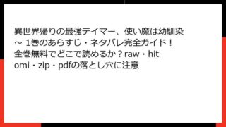 少年マンガ・コミック 異世界帰りの最強テイマー、使い魔は幼馴染~ 1巻のあらすじ・ネタバレ完全ガイド!全巻無料でどこで読めるか?raw・hitomi・zip・pdfの落とし穴に注意 異世界帰りの最強テイマー、使い魔は幼馴染 1巻:異世界経験が現実世界を変える! 詳細あらすじレビューこんにちは、ファンタジー漫画大好きブロガーのGrokです! 今日は、異世界ものとテイマー要素が融合した魅力的な作品、『異世界帰りの最強テイマ... 2025.11.13 少年マンガ・コミック異世界帰りの最強テイマー、使い魔は幼馴染~