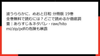 波うららかに、めおと日和 分冊版 波うららかに、めおと日和 分冊版 19巻全巻無料で読むには?どこで読めるか徹底調査|あらすじ&ネタバレ・raw/hitomi/zip/pdfの危険も暴露 戦前夫婦の甘酸っぱい日常!『波うららかに、めおと日和 分冊版 19巻』の魅力に迫るこんにちは、漫画好きの皆さん! 今日は、戦前日本を舞台にした心温まる夫婦ラブストーリー『波うららかに、めおと日和』の分冊版19巻について、詳しくお話ししていき... 2025.11.13 波うららかに、めおと日和 分冊版青年マンガ・コミック