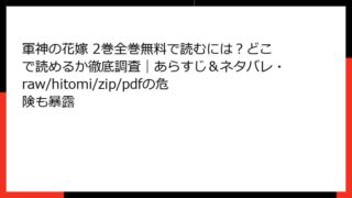 少女マンガ・コミック 軍神の花嫁 2巻全巻無料で読むには?どこで読めるか徹底調査|あらすじ&ネタバレ・raw/hitomi/zip/pdfの危険も暴露 軍神の花嫁 2巻:偽りの絆が本物の愛に変わる、運命の試練こんにちは、漫画好きの皆さん! 今日のレビューは、ファンタジーロマンスの傑作として注目を集めている『軍神の花嫁』第2巻についてです。この作品は、呪われた将軍と身代わりの花嫁が織りなす切... 2025.11.13 少女マンガ・コミック軍神の花嫁
