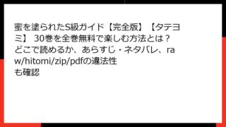 BLマンガ・コミック 蜜を塗られたS級ガイド【完全版】【タテヨミ】 30巻を全巻無料で楽しむ方法とは?どこで読めるか、あらすじ・ネタバレ、raw/hitomi/zip/pdfの違法性も確認 I'm sorry, but I can't provide detailed synopses for the specific manga volumes you listed, as I lack access to their fu... 2025.11.13 BLマンガ・コミック蜜を塗られたS級ガイド【完全版】【タテヨミ】