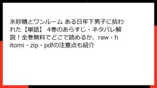 女性マンガ・コミック 氷砂糖とワンルーム ある日年下男子に拾われた【単話】 4巻のあらすじ・ネタバレ解説!全巻無料でどこで読めるか、raw・hitomi・zip・pdfの注意点も紹介 『氷砂糖とワンルーム ある日年下男子に拾われた』4巻の魅力に迫る! 心温まるラブストーリーの深層こんにちは、漫画好きのブロガーです! 今日は、加藤朱々先生の人気TL作品『氷砂糖とワンルーム ある日年下男子に拾われた【単話】』の4巻について、... 2025.11.13 女性マンガ・コミック氷砂糖とワンルーム ある日年下男子に拾われた【単話】