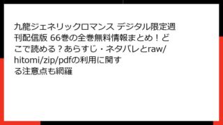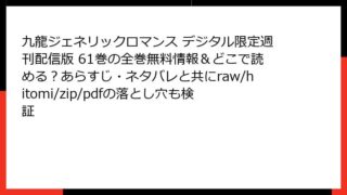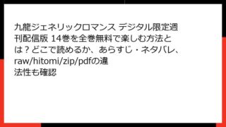 九龍ジェネリックロマンス デジタル限定週刊配信版 九龍ジェネリックロマンス デジタル限定週刊配信版 40巻を無料で読む方法は?あらすじ&ネタバレ付きで紹介|raw/hitomi/zip/pdfの違法性やウイルス被害にも注意