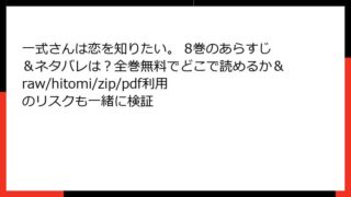 一式さんは恋を知りたい。 一式さんは恋を知りたい。 8巻のあらすじ&ネタバレは?全巻無料でどこで読めるか&raw/hitomi/zip/pdf利用のリスクも一緒に検証 一式さんは恋を知りたい。8巻 詳細あらすじ:恋の深層に潜む葛藤と成長人気ラブコメディシリーズ『一式さんは恋を知りたい。』の第8巻は、主人公・一式みゆきの恋心がさらに複雑に絡み合う展開で、読者の心を掴んで離しません。無垢で純粋なみゆきが、恋の... 2025.11.13 一式さんは恋を知りたい。少年マンガ・コミック