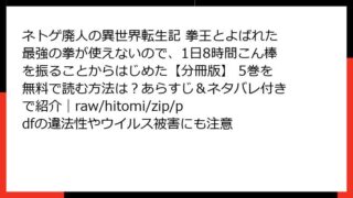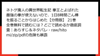 ネトゲ廃人の異世界転生記 拳王とよばれた最強の拳が使えないので、1日8時間こん棒を振ることからはじめた【分冊版】 ネトゲ廃人の異世界転生記 拳王とよばれた最強の拳が使えないので、1日8時間こん棒を振ることからはじめた【分冊版】 19巻を全巻無料で読むには?どこで読めるかの最新情報と、あらすじ・ネタバレ、raw・hitomi・zip・pdfのリスクも確認