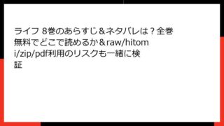 ライフ ライフ 8巻のあらすじ&ネタバレは?全巻無料でどこで読めるか&raw/hitomi/zip/pdf利用のリスクも一緒に検証 ライフ 8巻 あらすじ徹底解説:絆と葛藤が交錯する転換点巻全体の概要:いじめの連鎖が新たな局面へ『ライフ』8巻は、主人公・綾瀬ひかりの壮絶ないじめ体験を軸に、友情、裏切り、自己再生のテーマが深く掘り下げられる一冊です。前巻までの学校内での激... 2025.11.13 ライフ少女マンガ・コミック