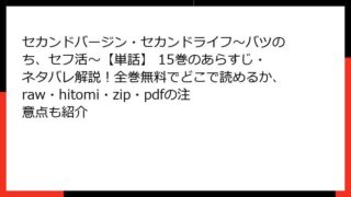 セカンドバージン・セカンドライフ~バツのち、セフ活~【単話】 セカンドバージン・セカンドライフ~バツのち、セフ活~【単話】 13巻はどこで読める?あらすじやネタバレ、全巻無料で読む方法も検証(rawやhitomi、zip/pdf利用のリスクも解説)