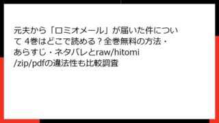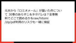 元夫から「ロミオメール」が届いた件について 元夫から「ロミオメール」が届いた件について 30巻のあらすじ&ネタバレは?全巻無料でどこで読めるか&raw/hitomi/zip/pdf利用のリスクも一緒に検証