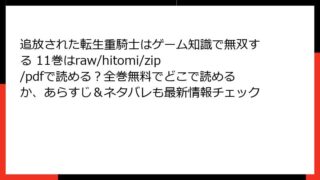 追放された転生重騎士はゲーム知識で無双する 追放された転生重騎士はゲーム知識で無双する 11巻はraw/hitomi/zip/pdfで読める?全巻無料でどこで読めるか、あらすじ&ネタバレも最新情報チェック 追放された転生重騎士はゲーム知識で無双する 11巻:前評判の高い異世界無双譚の新章を徹底解説異世界転生ファンの間で今なお熱い支持を集め続ける人気コミック『追放された転生重騎士はゲーム知識で無双する』。原作小説が「小説家になろう」で年間ランキ... 2025.11.14 追放された転生重騎士はゲーム知識で無双する青年マンガ・コミック