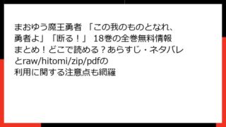 まおゆう魔王勇者 「この我のものとなれ、勇者よ」「断る!」 まおゆう魔王勇者 「この我のものとなれ、勇者よ」「断る!」 18巻の全巻無料情報まとめ!どこで読める?あらすじ・ネタバレとraw/hitomi/zip/pdfの利用に関する注意点も網羅