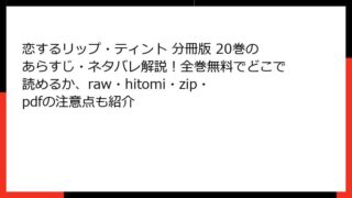 恋するリップ・ティント 分冊版22巻のあらすじ詳解人気少女漫画「恋するリップ・ティント」の分冊版22巻は、シリーズの魅力が詰まったエピソードです。この記事では、物語の背景から詳細なプロットまでを深掘りし、読み応えのある形でまとめます。メイク...