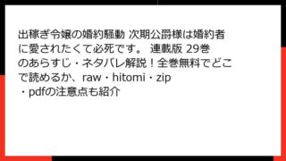 出稼ぎ令嬢の婚約騒動 次期公爵様は婚約者に愛されたくて必死です。 連載版 出稼ぎ令嬢の婚約騒動 次期公爵様は婚約者に愛されたくて必死です。 連載版 29巻のあらすじ・ネタバレ解説!全巻無料でどこで読めるか、raw・hitomi・zip・pdfの注意点も紹介
