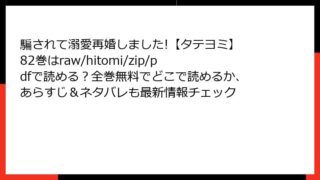 女性マンガ・コミック 騙されて溺愛再婚しました!【タテヨミ】 82巻はraw/hitomi/zip/pdfで読める?全巻無料でどこで読めるか、あらすじ&ネタバレも最新情報チェック 騙されて溺愛再婚しました!【タテヨミ】 82巻の魅力に迫る! 詳細あらすじと読みどころ満載レビューこんにちは、漫画好きの皆さん! 今日は、韓国発の人気ロマンスファンタジー漫画「騙されて溺愛再婚しました!【タテヨミ】」の82巻について、詳しく... 2025.11.16 女性マンガ・コミック騙されて溺愛再婚しました!【タテヨミ】