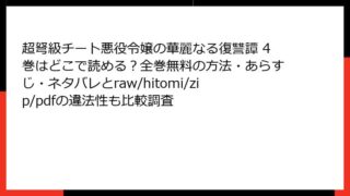 少女マンガ・コミック 超弩級チート悪役令嬢の華麗なる復讐譚 4巻はどこで読める?全巻無料の方法・あらすじ・ネタバレとraw/hitomi/zip/pdfの違法性も比較調査 超弩級チート悪役令嬢の華麗なる復讐譚 4巻:復讐の炎が学園を焦がす! 詳細あらすじレビューこんにちは、悪役令嬢ファン必見のブログへようこそ! 今回は、みなと原作、見延案山子作画の人気コミカライズ作品『超弩級チート悪役令嬢の華麗なる復讐譚』の... 2025.11.16 少女マンガ・コミック超弩級チート悪役令嬢の華麗なる復讐譚