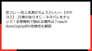 女性マンガ・コミック 恋フレ ~恋人未満がちょうどいい~【タテヨミ】 25巻のあらすじ・ネタバレをチェック!全巻無料で読める場所は?raw/hitomi/zip/pdfの危険性も解説 恋フレ ~恋人未満がちょうどいい~【タテヨミ】25巻の魅力に迫る! 心揺さぶるあらすじと深掘りレビューこんにちは、漫画好きの皆さん! 今日のブログは、現代の恋愛観を鋭く描いた人気ウェブトゥーンから生まれた作品、恋フレ ~恋人未満がちょうどい... 2025.11.16 女性マンガ・コミック恋フレ ~恋人未満がちょうどいい~【タテヨミ】
