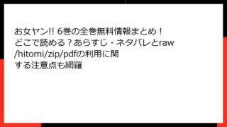 お女ヤン!! お女ヤン!! 6巻の全巻無料情報まとめ!どこで読める?あらすじ・ネタバレとraw/hitomi/zip/pdfの利用に関する注意点も網羅 お女ヤン!! 6巻の魅力に迫る! 物語が大きく動き出すハイテンションラブコメの深掘りレビューみなさん、こんにちは! 今日のブログは、超人気ヤンキーラブコメ漫画『お女ヤン!! イケメン☆ヤンキー☆パラダイス』の第6巻について、たっぷりとお届け... 2025.11.17 お女ヤン!!少女マンガ・コミック