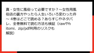 女性マンガ・コミック 真・女性に風俗って必要ですか?~女性用風俗店の裏方やったら人生いろいろ変わった件~ 4巻はどこで読める?あらすじやネタバレ、全巻無料で読む方法も検証(rawやhitomi、zip/pdf利用のリスクも解説)