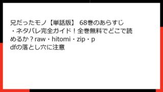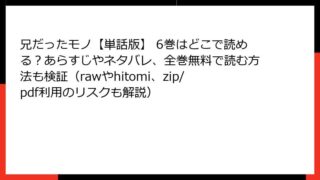 兄だったモノ【単話版】 兄だったモノ【単話版】 6巻はどこで読める?あらすじやネタバレ、全巻無料で読む方法も検証(rawやhitomi、zip/pdf利用のリスクも解説)